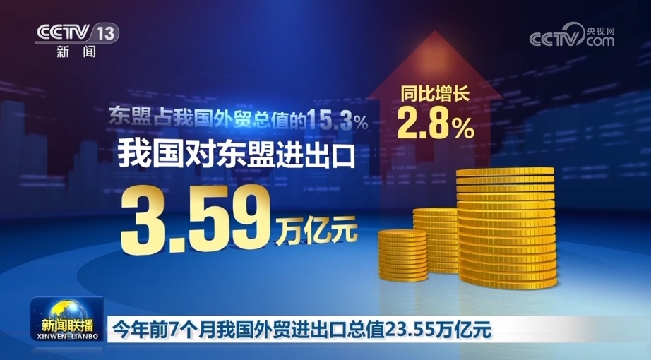 央視網(wǎng)消息(新聞聯(lián)播):海關總署今天(8月8日)對外公布,今年前7個月,我國貨物貿(mào)易進出口總值23.55萬億元,外貿(mào)運行平穩(wěn)、符合預期。