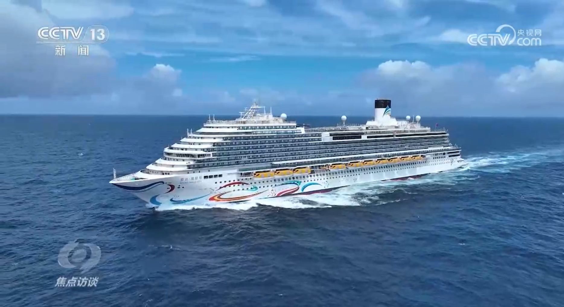 央視網(wǎng)消息(焦點(diǎn)訪談):一艘名叫“愛達(dá)·魔都號”的巨輪,是我國自主建造的首艘大型郵輪,它于7月24日完成了首次海上試航,??吭谏虾M飧邩虼a頭,預(yù)計(jì)今年三季度還將開展第二次試航。大型郵輪的建造是一個(gè)國家裝備建造能力和綜合科技水平的集中展現(xiàn)。今天的節(jié)目,我們先跟著這艘巨輪,去感受一下我國船舶工業(yè)最新的脈動。