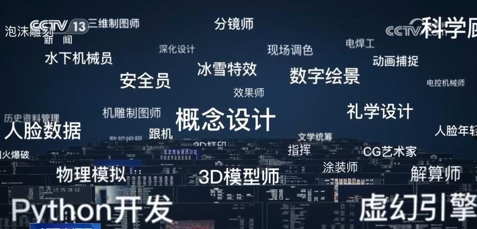 從30多萬字的文本中,AI算法識別出了300多個電影產(chǎn)業(yè)工種,一條隱藏在幕后的國產(chǎn)電影產(chǎn)業(yè)鏈在眼前展開。這是一個電影產(chǎn)業(yè)鏈越分越細、工種越增越多的過程。20多個新的工種在這10年間誕生,動作捕捉、虛擬拍攝、數(shù)控編程、3D打印等,其中,七成以上的新增工種跟數(shù)字化技術的進步有關。