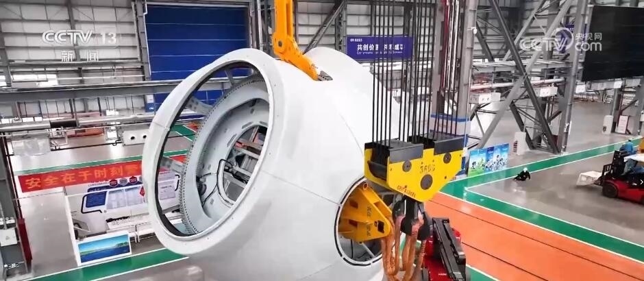 總臺(tái)記者 趙雄:在現(xiàn)場(chǎng)我們看到,生產(chǎn)一臺(tái)機(jī)組所需要的輪轂、發(fā)電機(jī)、傳動(dòng)裝置等各個(gè)部件都匯聚在這里,而這些部件都來(lái)自不同的供應(yīng)商。