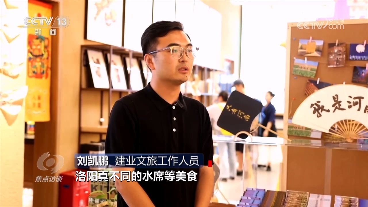 建業(yè)文旅工作人員劉凱鵬:“這個暑期的省外游客占比已經(jīng)超過六成,我們也深度挖掘了當?shù)匚幕头沁z文化,游客可以通過拓印一張木板年畫、手做一副蒲扇,來感受非遺文化的記憶之美,同時,各種各樣的河南特色小吃、洛陽真不同的水席等美食,讓游客除了戲劇以外,全方位沉浸在河南文化的熏陶當中。”