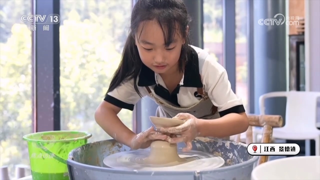 在景德鎮(zhèn)的一家陶瓷工坊,老師正在認真講解制作技藝。不過,看起來容易做起來難,大公雞到了自己手里就捏成了個四不像。還是小朋友厲害,小茶碗捏得有模有樣。周曉雷來自湖北武漢,這個暑假她特意帶孩子來景德鎮(zhèn)住一周,想讓孩子了解和體驗陶瓷制作這門非遺文化。