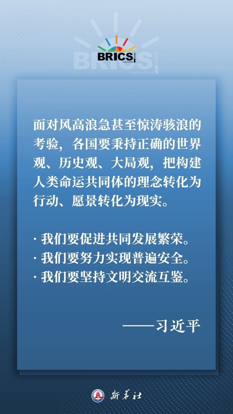 當?shù)貢r間8月22日下午,國家主席習(xí)近平向約翰內(nèi)斯堡金磚國家工商論壇閉幕式發(fā)表致辭,為各國深化團結(jié)合作、應(yīng)對風險挑戰(zhàn)、共建更加美好的世界指明方向——
