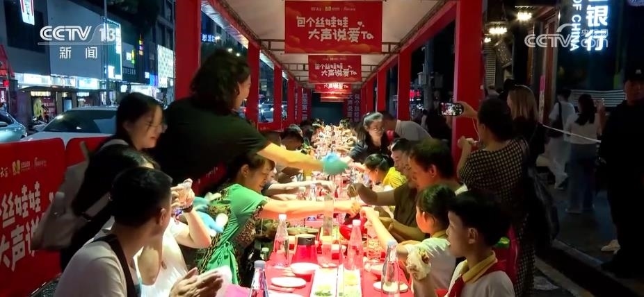 這個(gè)暑期,貴州貴陽天氣涼爽,來這里旅游還可以感受一下貴陽云巖區(qū)的長(zhǎng)街宴。近60米的長(zhǎng)街宴一字排開,游客圍坐在長(zhǎng)桌邊,品嘗當(dāng)?shù)氐姆沁z美食“絲娃娃”。這是一種貴陽傳統(tǒng)小吃,別名素春卷,已有百年歷史。
