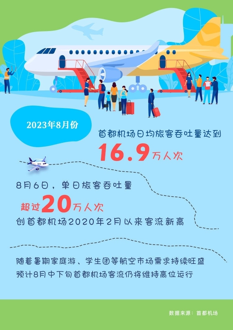 全國各大機場內(nèi)外也一片熙熙攘攘的繁忙畫面。首都機場有關(guān)負(fù)責(zé)人介紹,暑運以來,首都機場航班量和旅客量同樣屢創(chuàng)新高。其中8月6日,單日旅客吞吐量超過20萬人次,創(chuàng)首都機場2020年2月以來客流新高。