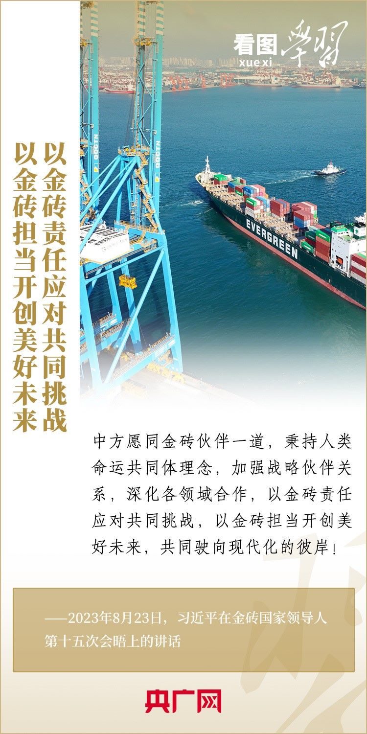 當(dāng)?shù)貢r(shí)間8月23日,習(xí)近平主席出席金磚國(guó)家領(lǐng)導(dǎo)人第十五次會(huì)晤并發(fā)表重要講話,強(qiáng)調(diào)金磚國(guó)家要秉持開放包容、合作共贏的金磚精神,以金磚責(zé)任應(yīng)對(duì)共同挑戰(zhàn),以金磚擔(dān)當(dāng)開創(chuàng)美好未來(lái)。一起來(lái)學(xué)習(xí)!