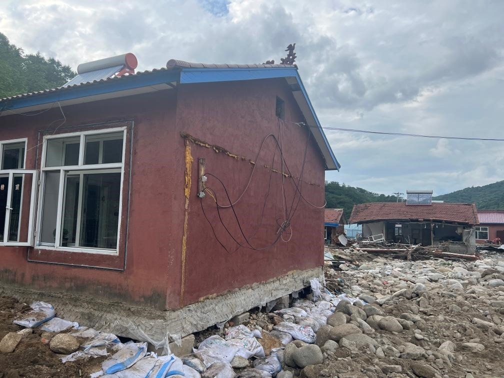 8月25日,雪谷景區(qū)內受損的房屋。新華社記者董寶森攝
