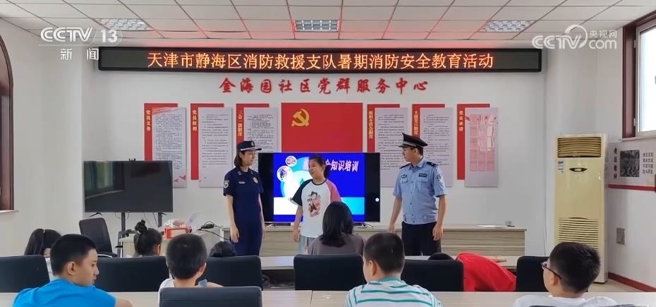 天津公安民警聯(lián)合消防救援人員走進(jìn)社區(qū),宣傳員叮囑同學(xué)們要注意不能到河流、水庫等沒有安全保障的水域洗澡、游泳,并通過真實(shí)的案例傳授在遇到困難與危險情況下的自救和求助方法。