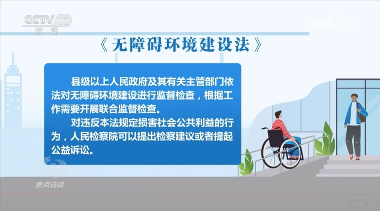 有了設(shè)施建設(shè)標(biāo)準(zhǔn)、劃分了管理維護(hù)責(zé)任,這還不夠,沒有監(jiān)督,無障礙環(huán)境建設(shè)工作很難持久。在《無障礙環(huán)境建設(shè)法》中,還對“如何保障‘急難愁盼’問題得到解決”進(jìn)行了規(guī)定。比如縣級以上人民政府及其有關(guān)主管部門依法對無障礙環(huán)境建設(shè)進(jìn)行監(jiān)督檢查,根據(jù)工作需要開展聯(lián)合監(jiān)督檢查。對違反《無障礙環(huán)境建設(shè)法》規(guī)定損害社會公共利益的行為,人民檢察院可以提出檢察建議或者提起公益訴訟。