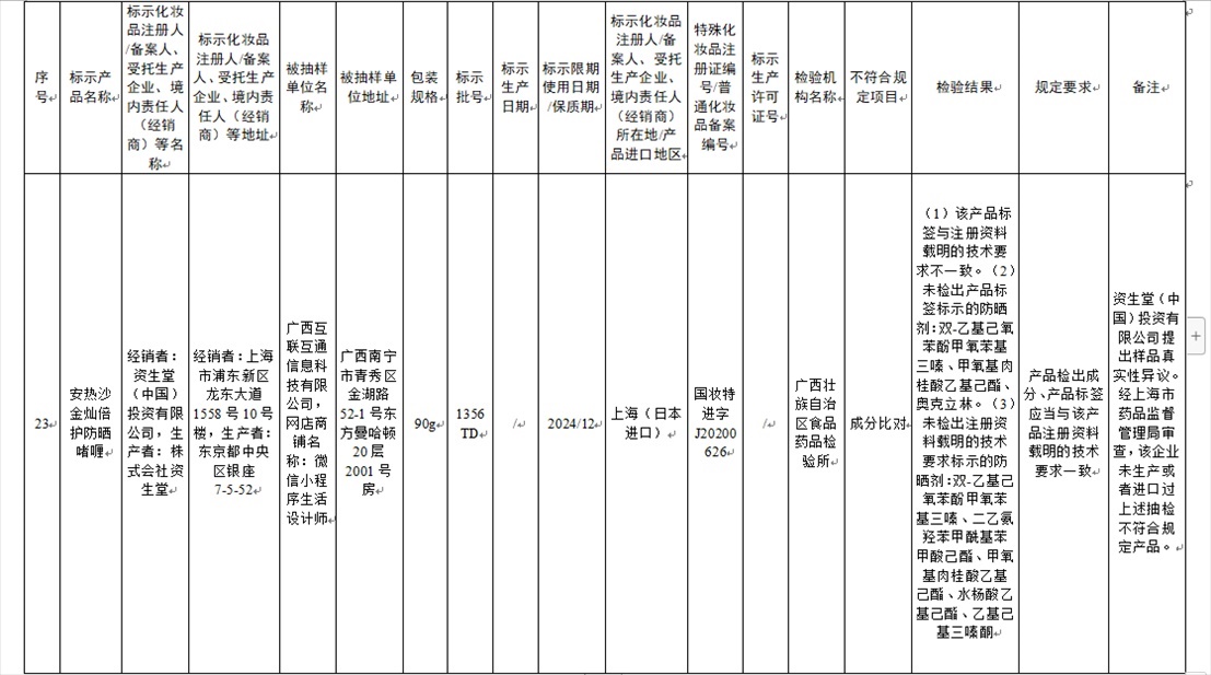 國家藥監(jiān)局網(wǎng)站今天發(fā)布通告稱,在2023年國家化妝品抽樣檢驗工作中,經(jīng)重慶市食品藥品檢驗檢測研究院等單位檢驗,產(chǎn)品標(biāo)簽標(biāo)示為廣州市天科化妝品有限公司生產(chǎn)的天科染發(fā)膏(自然黑)等23批次化妝品不符合規(guī)定(見下圖表格)。