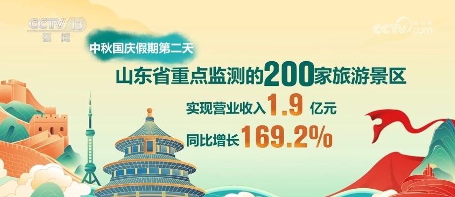 2023年中秋、國(guó)慶假期,山東旅游市場(chǎng)熱度攀升。9月30日,山東省重點(diǎn)監(jiān)測(cè)的200家旅游景區(qū),當(dāng)日接待游客267.9萬(wàn)人次,同比增長(zhǎng)131.5%;實(shí)現(xiàn)營(yíng)業(yè)收入1.9億元,同比增長(zhǎng)169.2%。