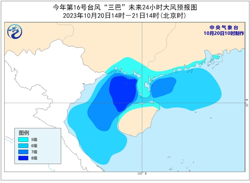 央視網(wǎng)消息:中央氣象臺(tái)10月20日10時(shí)繼續(xù)發(fā)布臺(tái)風(fēng)藍(lán)色預(yù)警: