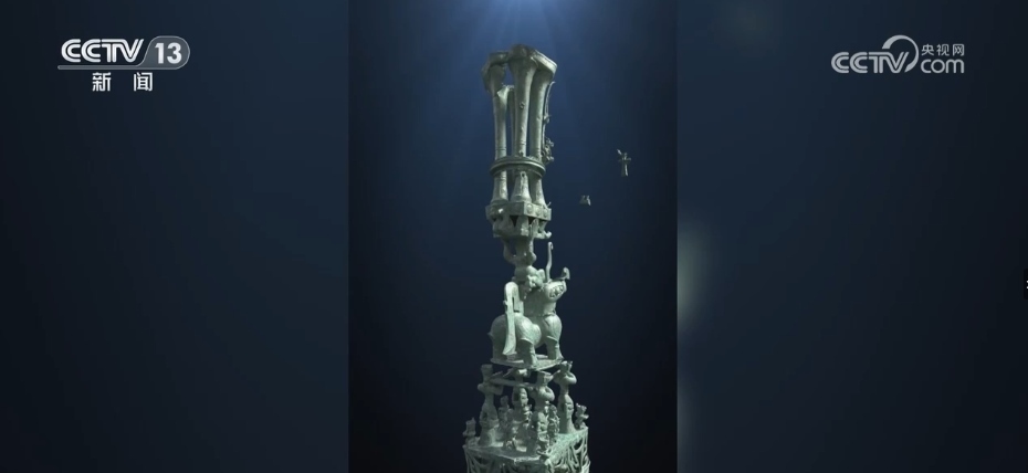 總臺央視記者 張春玲:很多考古發(fā)掘出來的文物是破碎甚至變形非常嚴重。頂尊銅人像、大神獸它們分別來自于8號坑和3號坑,“跨坑組合”成一個完整的鼎尊騎獸人像。通過最新的數(shù)字文物修復技術和3D打印技術,最終一個完整組合的器型呈現(xiàn)在了觀眾面前。
