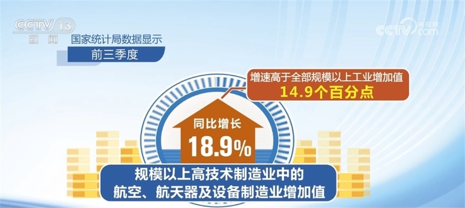 高技術產(chǎn)業(yè)投資動力強勁,新動能領域保持較快增長。國家統(tǒng)計局數(shù)據(jù)顯示,前三季度,高技術制造業(yè)投資和高技術服務業(yè)投資分別同比增長11.3%和11.8%,分別高于全部固定資產(chǎn)投資增速8.2和8.7個百分點,持續(xù)推動產(chǎn)業(yè)轉型升級。規(guī)模以上高技術制造業(yè)中的航空、航天器及設備制造業(yè)增加值同比增長18.9%,增速高于全部規(guī)模以上工業(yè)增加值14.9個百分點。