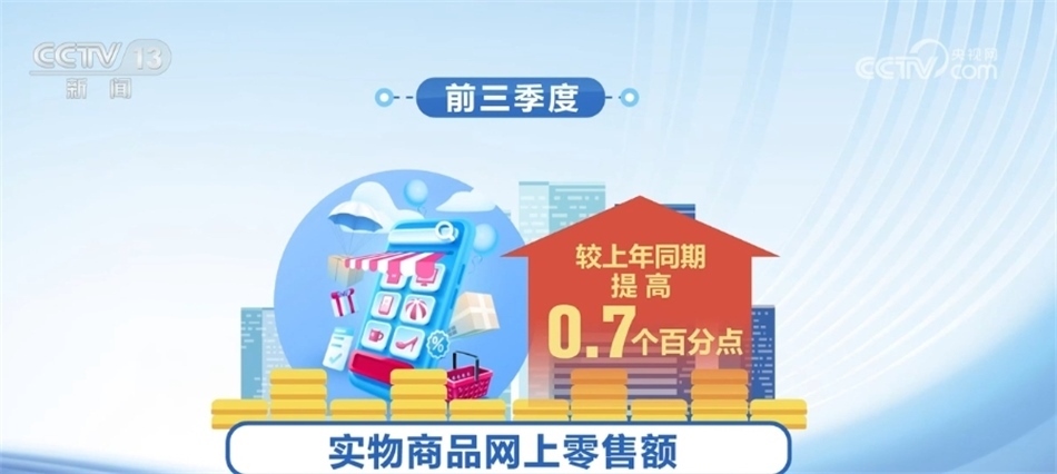 消費新業(yè)態(tài)持續(xù)活躍,市場活力不斷激發(fā)。前三季度,實物商品網(wǎng)上零售額同比增長8.9%,占社會消費品零售總額的比重為26.4%,較上年同期提高0.7個百分點。1—8月份,重點領域服務業(yè)企業(yè)營業(yè)收入保持增長,規(guī)模以上高技術服務業(yè)、科技服務業(yè)和戰(zhàn)略性新興服務業(yè)企業(yè)營業(yè)收入同比增速分別為10.6%、11.1%和8.8%,分別高于全部規(guī)模以上服務業(yè)企業(yè)3.4、3.9和1.6個百分點。