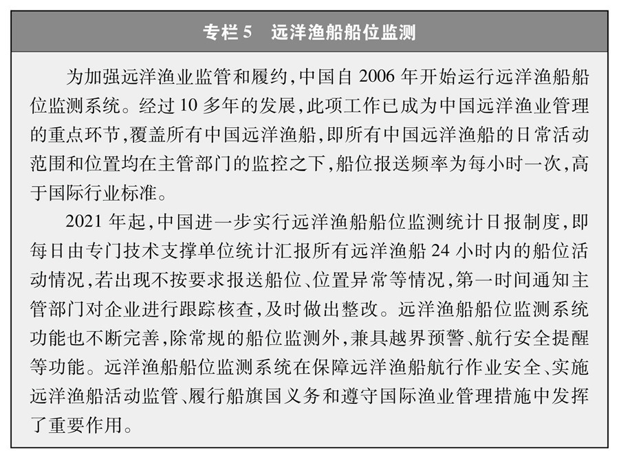 作為負(fù)責(zé)任的漁業(yè)國(guó)家,中國(guó)嚴(yán)格執(zhí)行《聯(lián)合國(guó)海洋法公約》以及加入的多邊漁業(yè)協(xié)定,從總量控制、限制船數(shù)、數(shù)據(jù)收集報(bào)送和國(guó)家觀察員制度等方面全面履行船旗國(guó)義務(wù)②,取得積極成效。