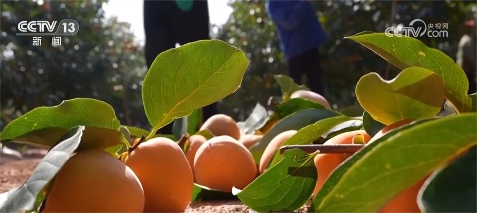 總臺(tái)記者 譚海梅:霜降過(guò)后又到了柿子成熟的季節(jié),我現(xiàn)在是在陜西富平縣,這里地處黃土高原和關(guān)中平原的過(guò)渡地帶。因?yàn)闀円箿夭畲蟆⒐庹粘渥?,所以這里也是聞名的柿子優(yōu)生區(qū)。一園接一園的大尖柿掛滿枝頭,也是富平鄉(xiāng)間獨(dú)有的秋韻。