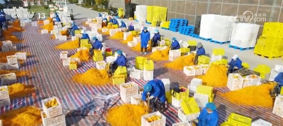 經(jīng)歷了采摘、削皮、吊掛、捏心、下架、出水、潮霜等12道純手工工序,直到果肉清甜紅亮,掛滿雪白的柿霜。這層白霜,其實(shí)是柿子在吊掛過(guò)程中,里面的水分蒸發(fā)、糖分滲出自然形成的,主要成分是葡萄糖、果糖。目前,富平縣柿子栽植達(dá)到36萬(wàn)畝,柿子產(chǎn)業(yè)帶動(dòng)農(nóng)戶(hù)約13萬(wàn)人,涵蓋種植、加工、銷(xiāo)售、運(yùn)輸?shù)雀黝I(lǐng)域。金色的富平柿子不僅點(diǎn)亮了秋色,也紅火了鄉(xiāng)村生活。