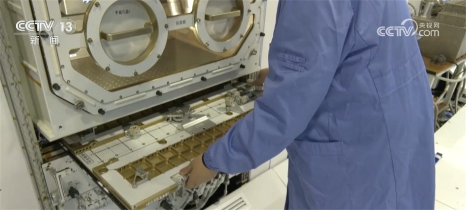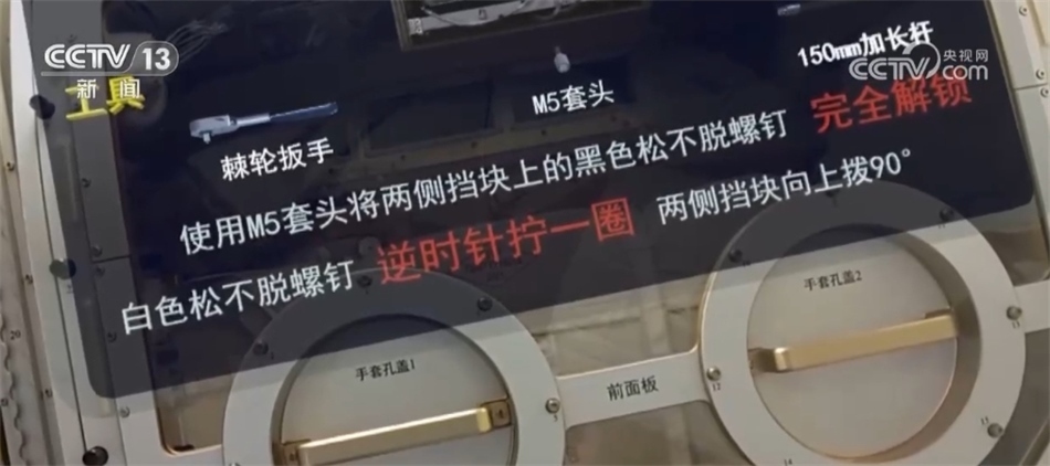 ?????? 中國科學院空間應用工程與技術中心研究員 張璐:這里面,我們主要是進行一些比如說小載荷、標準載荷的維修操作,包括有一些有密閉要求的載荷,我們可以通過更換手套進行操作。艙外有一些大型載荷有一些安裝、升級甚至拆裝的操作,我們可以通過這個移動維修平臺,把這個平臺拉開以后,它可以展開成一個大概900毫米x700毫米的一個大平板。艙外的這些大載荷可以在這個大平板上安裝固定,然后航天員在這個平板上結合內(nèi)部豐富的各種載荷的接口,來進行相應的維修操作。