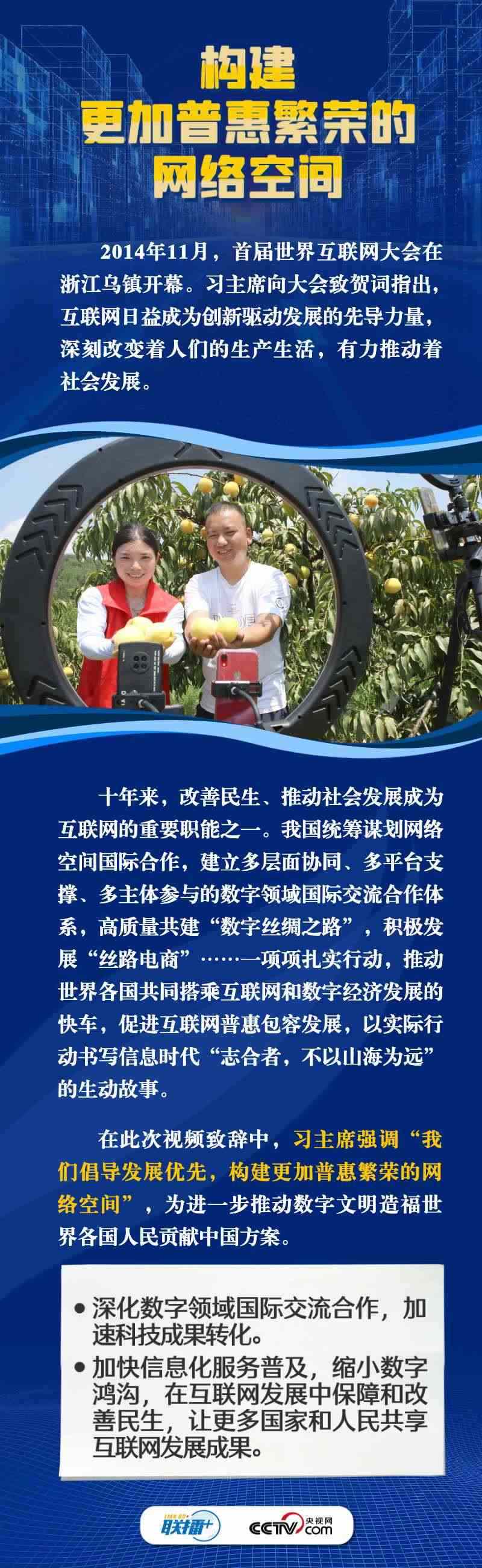 11月8日,習(xí)近平主席向2023年世界互聯(lián)網(wǎng)大會(huì)烏鎮(zhèn)峰會(huì)開幕式發(fā)表視頻致辭。自2014年首屆世界互聯(lián)網(wǎng)大會(huì)舉辦以來,習(xí)主席通過發(fā)表主旨演講、視頻致辭或者向大會(huì)發(fā)來賀信等不同形式關(guān)心大會(huì)的舉辦,始終倡導(dǎo)構(gòu)建網(wǎng)絡(luò)空間命運(yùn)共同體,得到國(guó)際社會(huì)廣泛認(rèn)同和積極響應(yīng)。