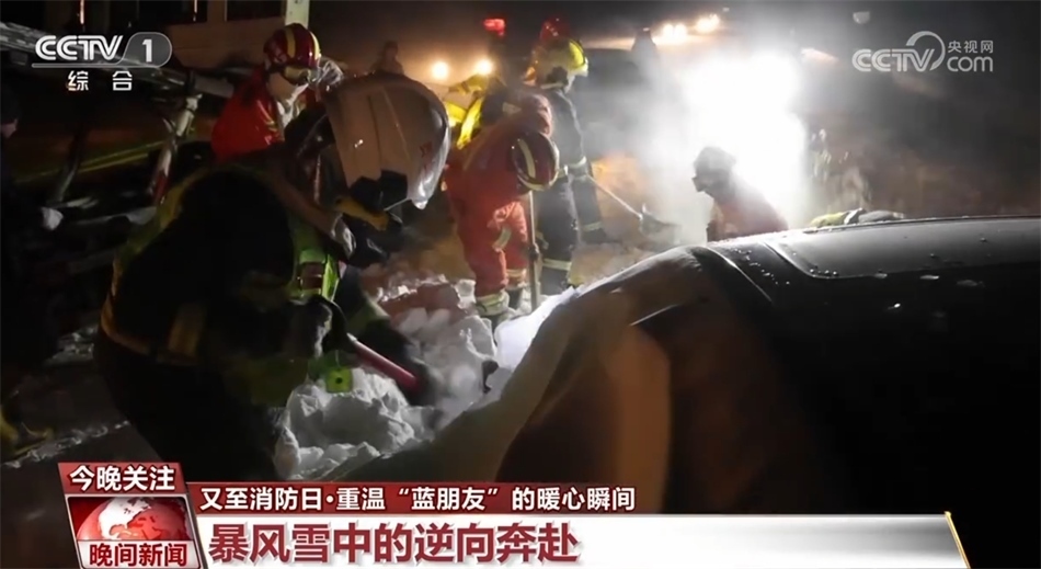 三月份的呼倫貝爾,暴雪在七級大風(fēng)的裹挾下形成風(fēng)吹雪的極端天氣,瞬間覆蓋了312國道上的過往車輛,車身被埋大半。頂著暴雪而來的消防員跪在雪地里,用鐵鍬挖、用手刨,爭分奪秒解救困車輛。救援從白天持續(xù)到夜間,消防員們從站著、跪著到躺在雪地上鏟雪,依次將27名被困人員、22輛車救離險境。