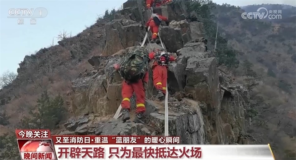 今年四月份,一處起火點在海拔3800多米的峭壁懸崖,為盡快滅火,最快的路線就是要翻越這段坡度超過70度的山脊。山脊寬不足米,左右兩側(cè)都是百米深的斷崖。負(fù)責(zé)開路的消防員只能用手指扣住石縫,雙腳登著石頭,把臉和軀干緊貼山體向上攀爬。在危險重重的絕壁上硬生生地開辟出了一條救援天路。二百多名消防員夜以繼日,在高海拔缺氧的環(huán)境下,每天背著將近40斤重的滅火機具往返于這條天路之上,奔赴火場。整整十個晝夜的撲救,山火終于被撲滅。