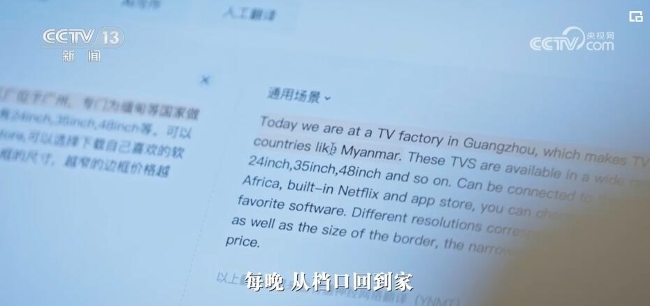 方菁:這是我們找的專(zhuān)門(mén)做外貿(mào)電視機(jī)的一家(工廠)。我給大家介紹一下,“大家好,我是方菁,今天我們來(lái)到了電視機(jī)工廠”。要介紹得更精密的時(shí)候,我就不知道該怎么說(shuō)了。打開(kāi)我的翻譯軟件,先把我要呈現(xiàn)的字幕輸入進(jìn)去。
