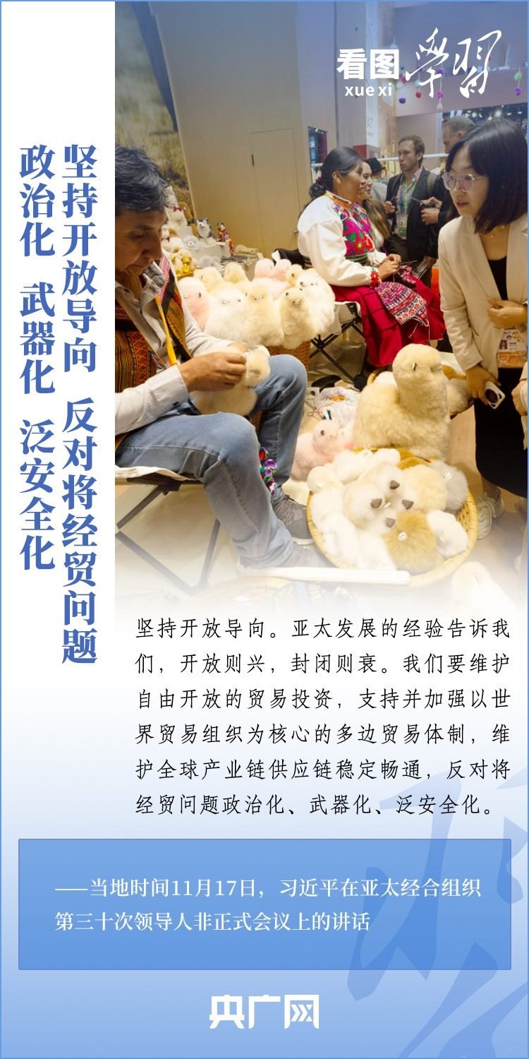 當(dāng)?shù)貢r間11月17日上午,亞太經(jīng)合組織第三十次領(lǐng)導(dǎo)人非正式會議在美國舊金山舉行。國家主席習(xí)近平出席會議并發(fā)表題為《堅守初心 團結(jié)合作 攜手共促亞太高質(zhì)量增長》的重要講話。習(xí)主席在講話中全面闡述了中國對深化亞太合作、促進地區(qū)和世界經(jīng)濟增長的重要主張,以“四個堅持”提出多項務(wù)實舉措,希望同各方一道努力,共同打造亞太下一個“黃金三十年”。一起來學(xué)習(xí)!