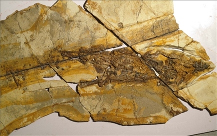 圖為極為罕見的恐龍皮膚化石。新華社記者曹國廠 攝