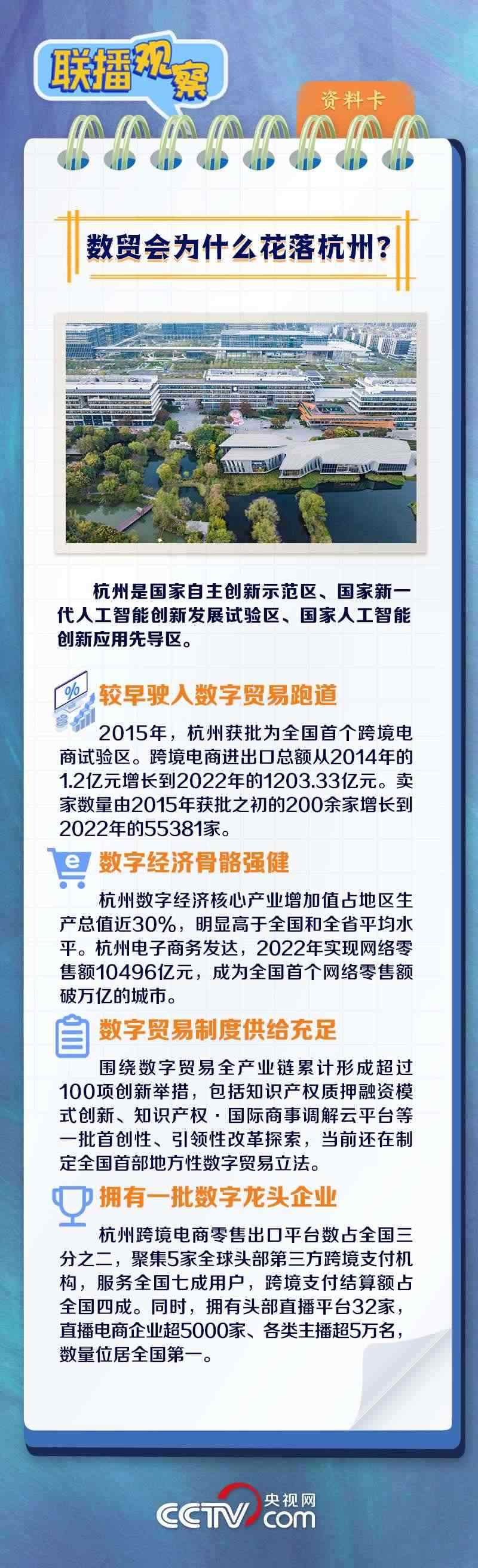 當(dāng)前,貨物貿(mào)易和服務(wù)貿(mào)易都呈現(xiàn)出不可逆的數(shù)字化轉(zhuǎn)型趨勢。什么是數(shù)字貿(mào)易?本屆數(shù)貿(mào)會有什么看點(diǎn)和亮點(diǎn)?我國數(shù)字貿(mào)易有何發(fā)展成果?央視網(wǎng)《聯(lián)播觀察》與您一同了解。