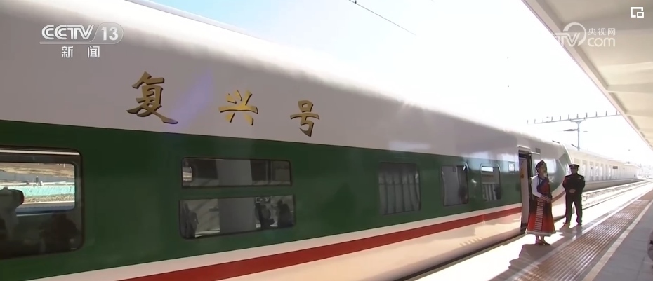 總臺記者 劉文杰:這是一款特別針對滇藏鐵路沿線高原、高寒環(huán)境設(shè)計的動車組。整列車的涂裝是以“中國紅”為腰帶、以“國槐綠”為窗帶,用“長城灰”進(jìn)行點綴,整體外觀大氣優(yōu)美。