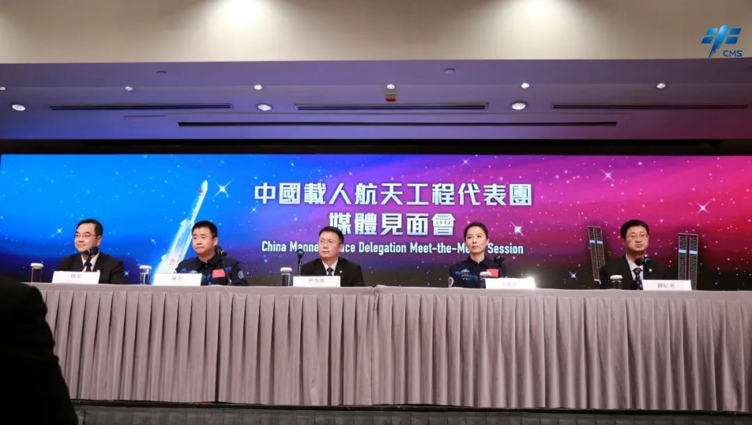見面會由香港特區(qū)政府新聞處處長陳偉偉主持,載人航天工程代表團全體成員參加。