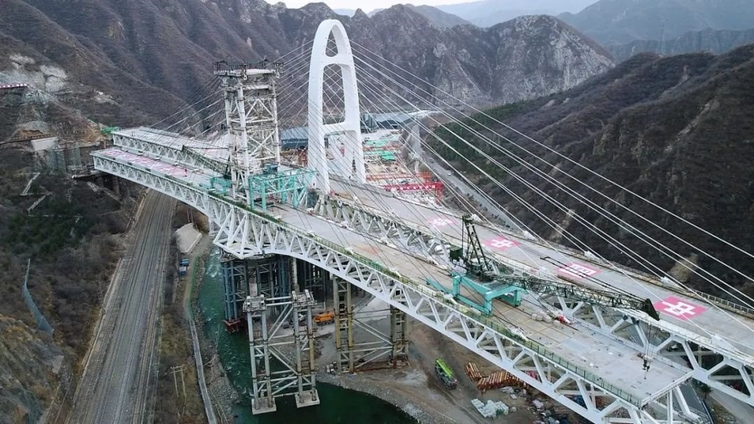 央視網(wǎng)消息:據(jù)“北京門頭溝”公眾號消息,11月28日下午,國道109新線高速公路安家莊特大橋完成重要標(biāo)志性節(jié)點施工建設(shè)任務(wù),全世界首例萬噸曲線鋼桁梁斜拉橋順利實現(xiàn)雙幅同步空中轉(zhuǎn)體,為京西再添新地標(biāo)。