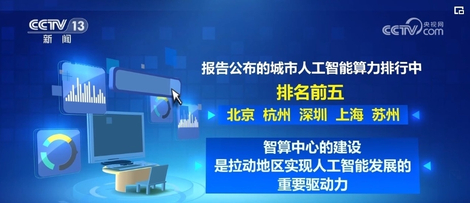 從地區(qū)分布看,《報告》公布的城市人工智能算力排行中,北京,杭州,深圳、上海、蘇州排名前五,智算中心的建設(shè)是拉動地區(qū)實現(xiàn)人工智能發(fā)展的重要驅(qū)動力。