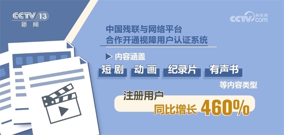 數(shù)據(jù)顯示,中國(guó)殘聯(lián)與網(wǎng)絡(luò)平臺(tái)合作開(kāi)通視障用戶認(rèn)證系統(tǒng)一年以來(lái),無(wú)障礙影視作品已超2000部(集),同比增長(zhǎng)超400%,內(nèi)容涵蓋短劇、動(dòng)畫、紀(jì)錄片、有聲書等內(nèi)容類型,注冊(cè)用戶同比增長(zhǎng)460%。