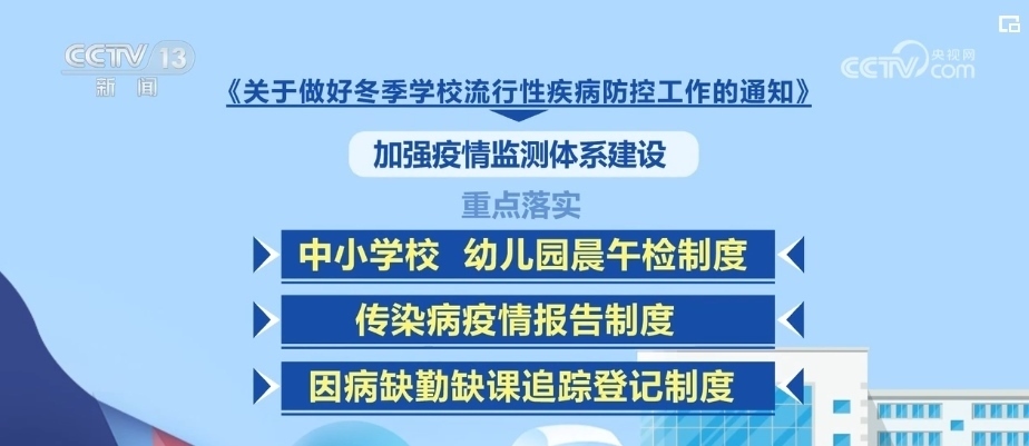 央視網(wǎng)消息:教育部12月5日發(fā)出通知,部署各地教育行政部門和學校切實做好冬季流行性疾病防控工作,保障師生健康和正常教育教學秩序。