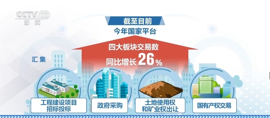 另外,全國(guó)公共資源交易平臺(tái)上的交易信息匯集發(fā)布量又創(chuàng)新高。截至目前,2023年國(guó)家平臺(tái)匯集工程建設(shè)項(xiàng)目招標(biāo)投標(biāo)、政府采購(gòu)、土地使用權(quán)和礦業(yè)權(quán)出讓、國(guó)有產(chǎn)權(quán)交易這四大板塊交易數(shù)同比增長(zhǎng)26%。