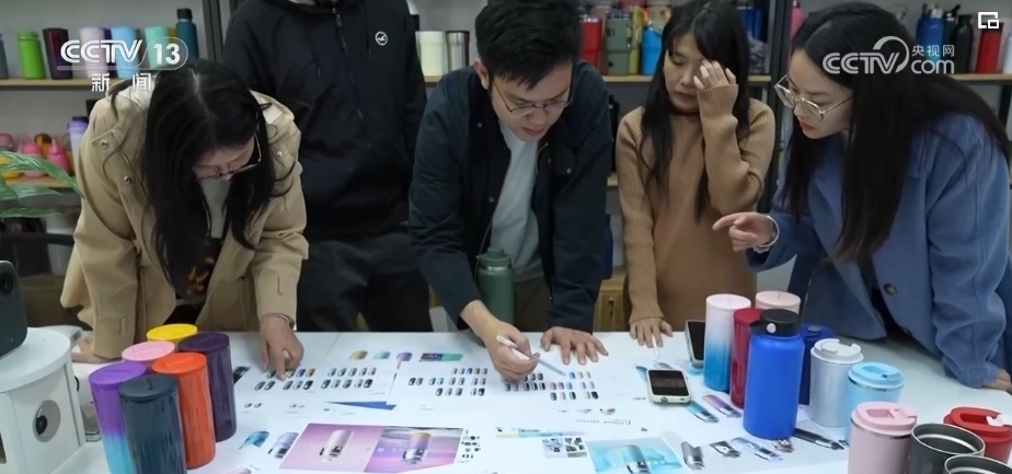 這兩天,王博文和設(shè)計(jì)團(tuán)隊(duì)正在為即將在海外上線(xiàn)的新款保溫杯挑選顏色,等顏色確定就可以開(kāi)始大批量的生產(chǎn)。