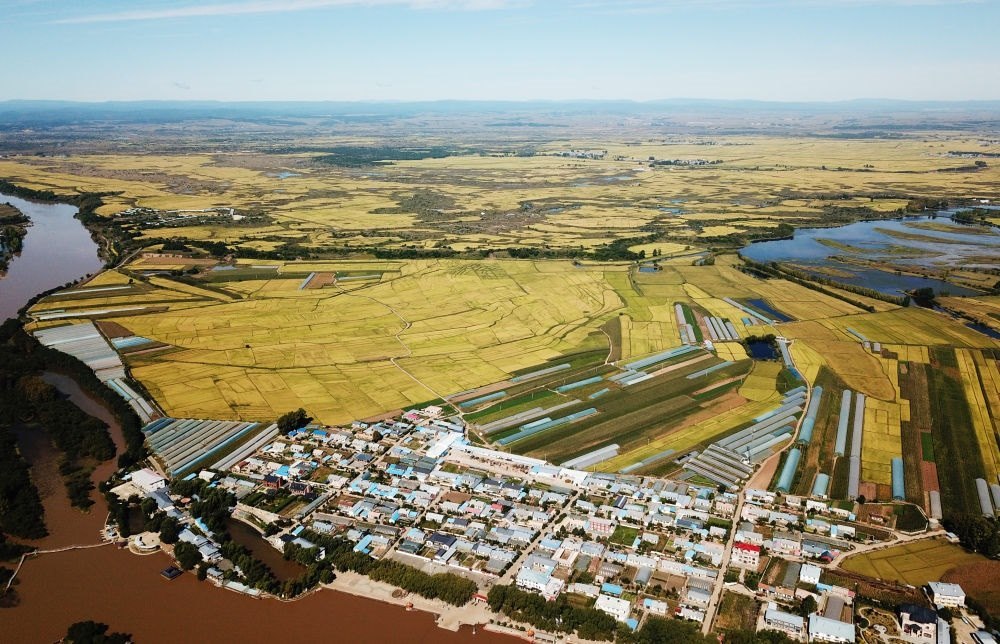 這是2023年9月13日拍攝的黑龍江省寧安市渤海鎮(zhèn)小朱家村附近的稻田(無人機照片)。新華社記者 王建威 攝