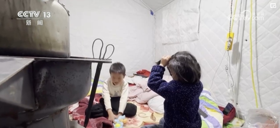 山上的兩個帳篷安置點,現(xiàn)在已經(jīng)拉了電,每個帳篷里配備了取暖爐。這幾天,大家商量著先吃大鍋飯,一些力所能及的人先行動,把村里的老弱病小照顧起來。