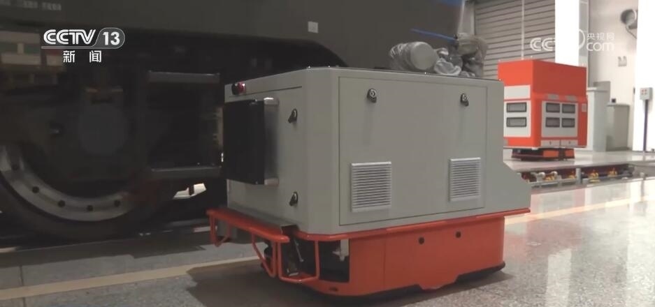 總臺(tái)記者 薛東海:列車途徑沿線隧道眾多,從而行駛過程當(dāng)中會(huì)積攢大量煤灰、粉塵,影響列車的安全。也意味著當(dāng)列車行駛到一段距離之后,就要來到庫區(qū)進(jìn)行維修和除塵工作。曾經(jīng)這項(xiàng)主要是依賴于人工,需要四名工人來到溝底進(jìn)行吹除作業(yè)。到了今年,這樣的工作被我旁邊的這個(gè)“小家伙”智能機(jī)器人取代了。