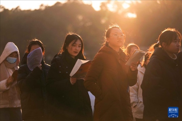 12月23日,在湖南省長(zhǎng)沙市,考生在湖南農(nóng)業(yè)大學(xué)考點(diǎn)排隊(duì)時(shí)抓緊復(fù)習(xí)。