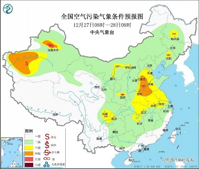 冷空氣勢力弱,霧和霾天氣又要登場。今天,華北、黃淮等地有輕度霾,局地中度或重度霾,27日華北中南部大氣擴散條件將有所改善。28日至30日,華北中南部、黃淮中西部、汾渭平原等地大氣擴散條件再次轉(zhuǎn)差,將有輕至中度霾,部分地區(qū)重度霾。此外,28日至30日的夜間至上午時段,華北中南部、黃淮、江淮東部、江漢、四川盆地等地的部分地區(qū)有大霧,局地有能見度不足200米的強濃霧。