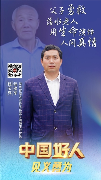 程寶存,男,1953年8月生;程建軍,男,1978年6月生。二人為父子關(guān)系,系陜西省商洛市丹鳳縣武關(guān)鎮(zhèn)梅莊村村民。2021年9月,父子兩人協(xié)力救助落水老人,父親程寶存不幸被水沖走獻(xiàn)出了寶貴生命。程建軍說(shuō):“這件事誰(shuí)遇到都會(huì)去做的,我相信我爸也不會(huì)后悔自己的選擇?!?/p>