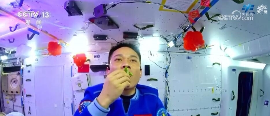 航天員 蔡旭哲:一共長了兩棵,吃了一棵。另外一棵留下來了,一直長大讓它變成了種子,后邊都開花了。親自品嘗到了這種生態(tài),這個(gè)特別感覺到很美味。能夠嘗到自己在太空種出來的生菜,我覺得是感到無比幸福。