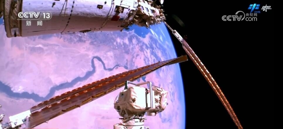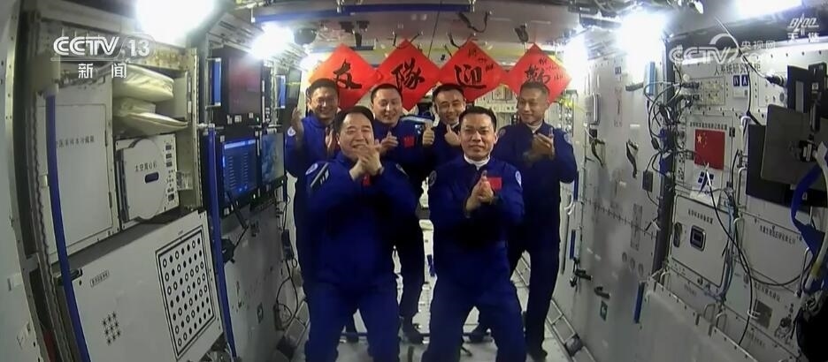 2023年10月26日19時(shí)34分,神舟十六號航天員乘組打開“家門”,歡迎神舟十七號航天員湯洪波、唐勝杰、江新林入駐“天宮”。兩個(gè)乘組在軌共同生活了約5天后,神舟十六號航天員在返回地球途中,還完成了此次飛行任務(wù)最后一項(xiàng)工作,首次拍攝了以地球?yàn)楸尘暗闹袊臻g站全景高清照片。