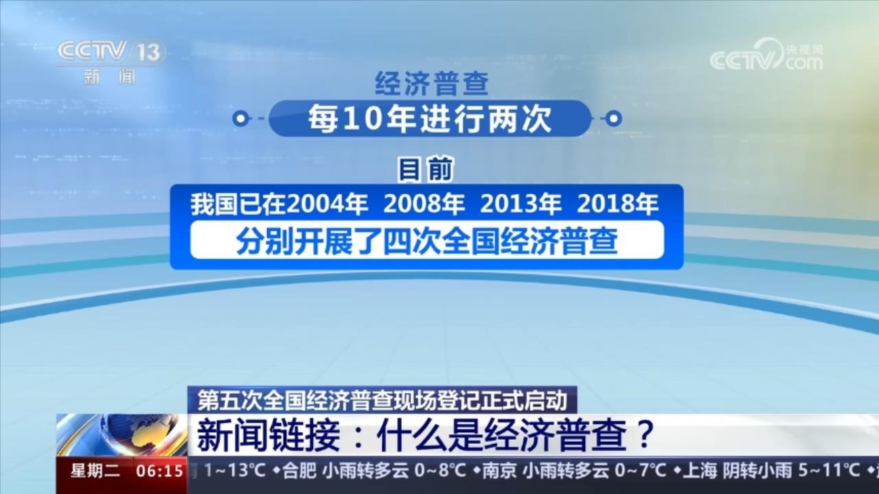 經(jīng)濟普查是一項重大的國情國力調查,與人口普查、農(nóng)業(yè)普查組成三大周期性全國普查項目。經(jīng)濟普查每10年進行兩次,目前我國已在2004年、2008年、2013年和2018年分別開展了四次全國經(jīng)濟普查。