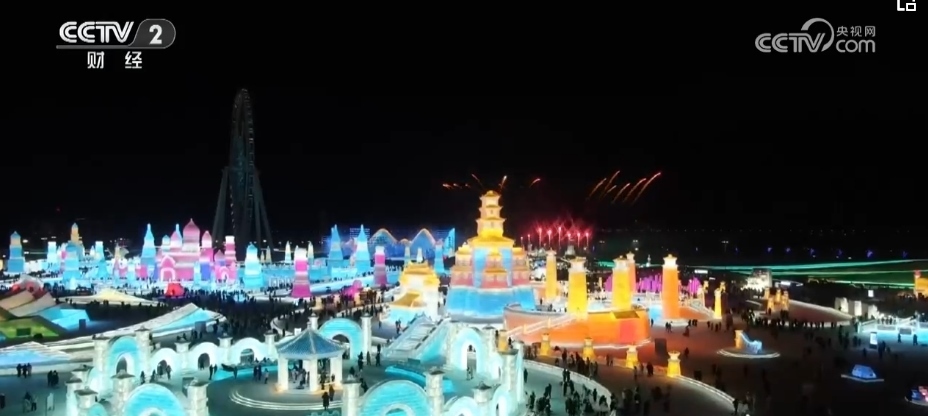 總臺(tái)央視記者 郭晉華:在這個(gè)冰雕玉砌的世界,一簇簇焰火映襯著流光溢彩的冰雕建筑群,帶著人們對(duì)新年的祈盼噴薄而出。哈爾濱冰雪大世界,雖然現(xiàn)在室外氣溫達(dá)到了零下20多度,但是大家冰雪跨年的熱情卻是點(diǎn)燃了全場(chǎng),來自全國(guó)各地的游客在這場(chǎng)狂歡中一起迎接新年的到來。