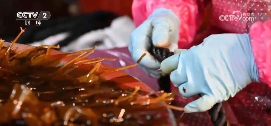 福清市海帶養(yǎng)殖戶 魏賢忠:現(xiàn)在是海帶分苗的黃金期,我們每天早上一點多就起床,趕著這段黃金期(分苗),一天的產(chǎn)量大概1000多條。