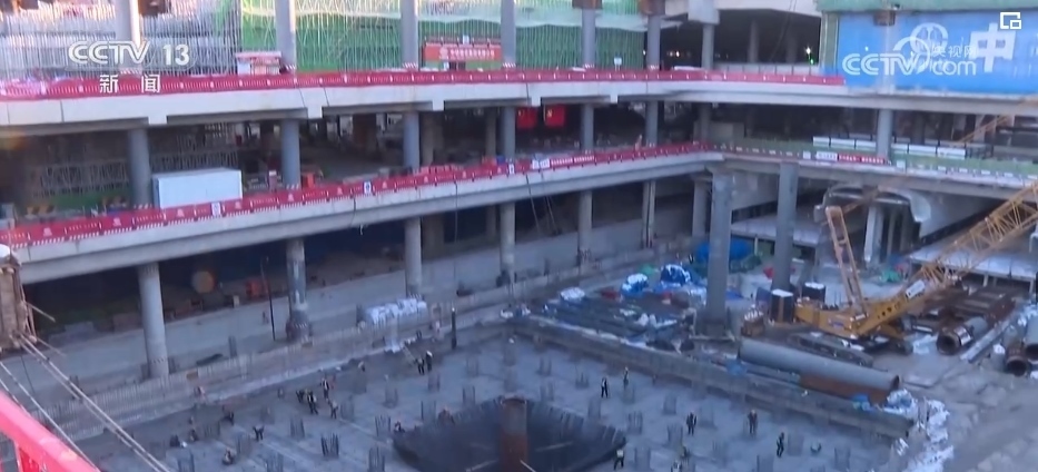 在位于北京市通州區(qū)的北京城市副中心站綜合交通樞紐,數(shù)百名建設(shè)者正在進行工程結(jié)構(gòu)施工,預(yù)計2024年4月底進入機電和內(nèi)部裝飾裝修施工階段。